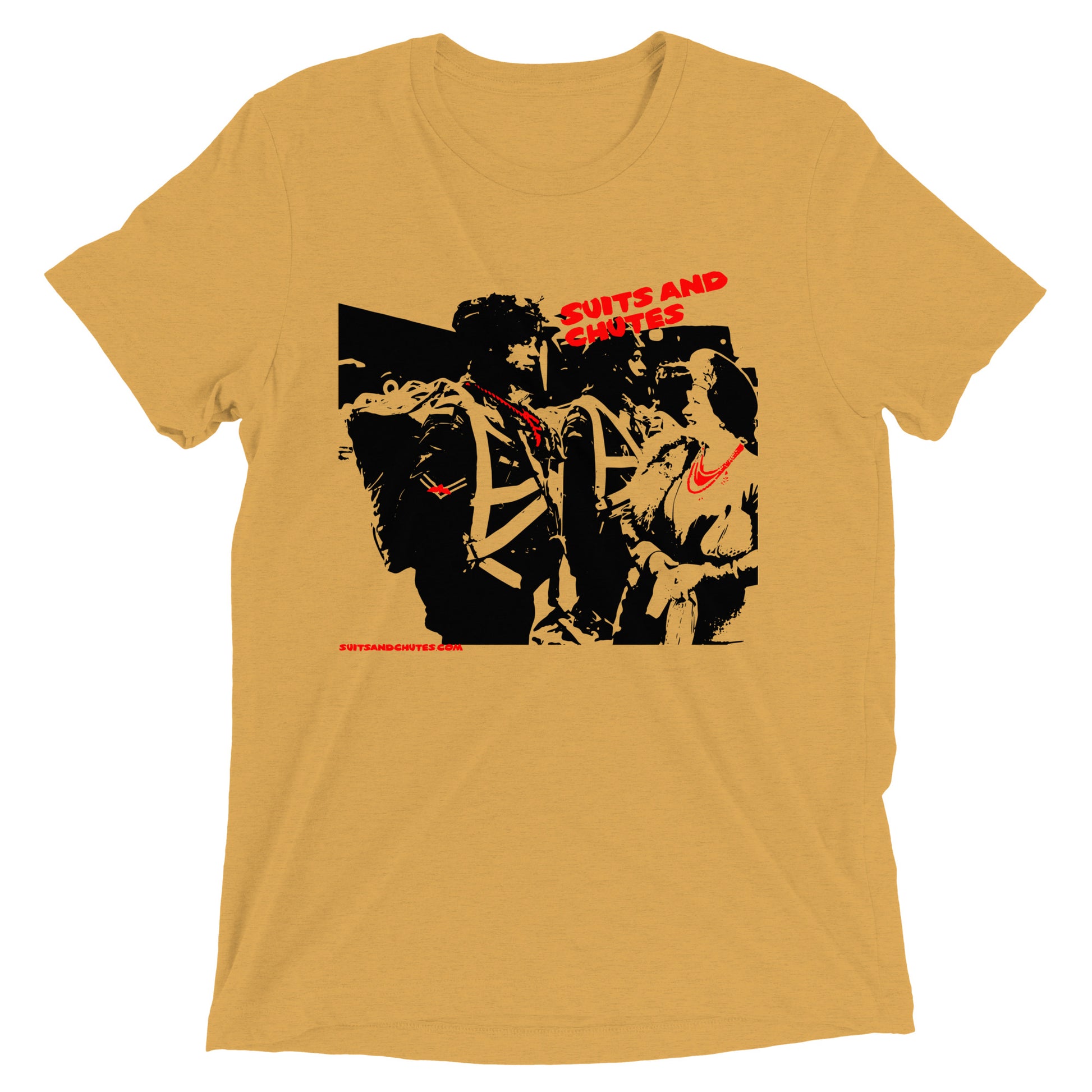This shirt pays tribute to the iconic British Paras. A spunky paratrooper is talking to the Queen Mum a few weeks before D-Day. Both are dressed to kill.