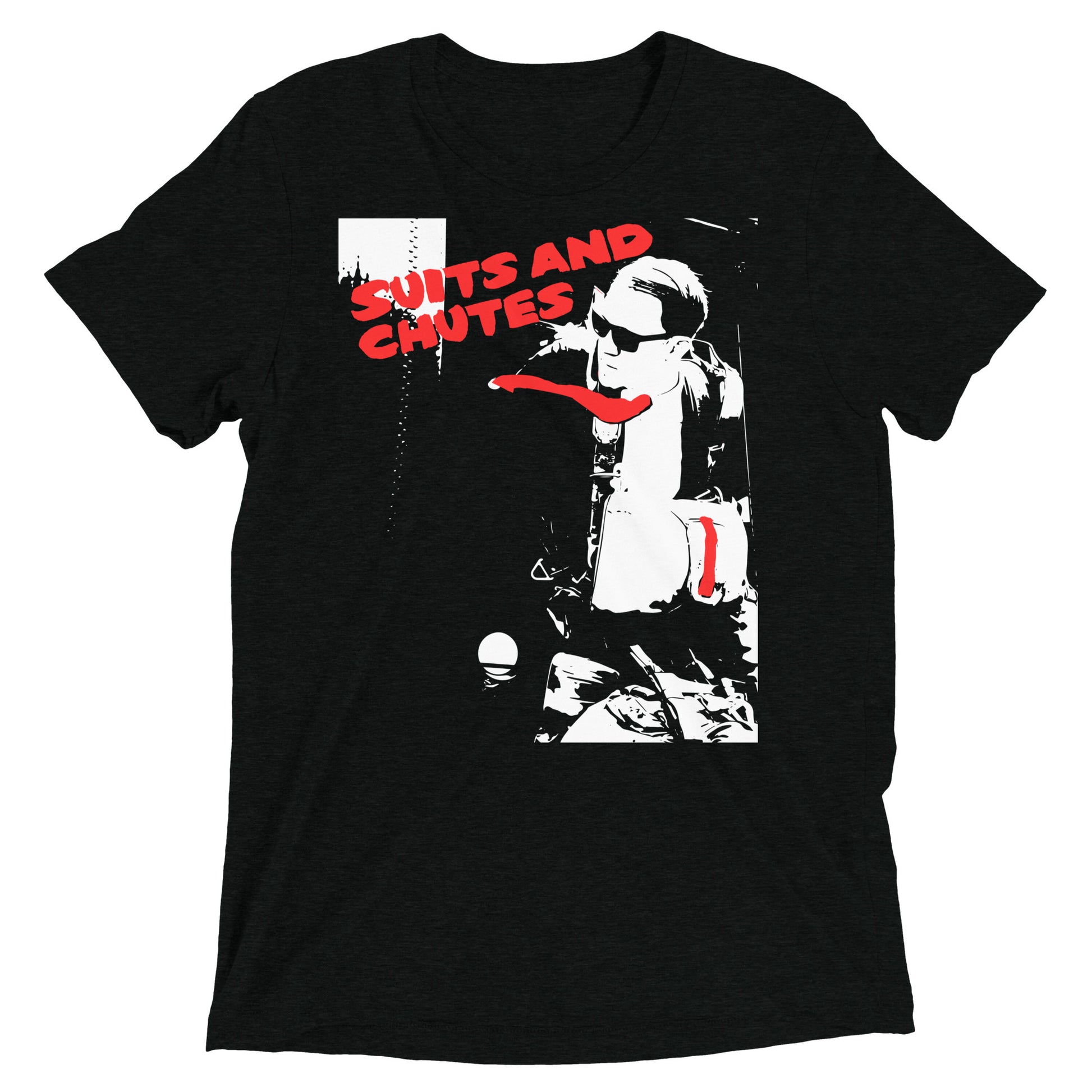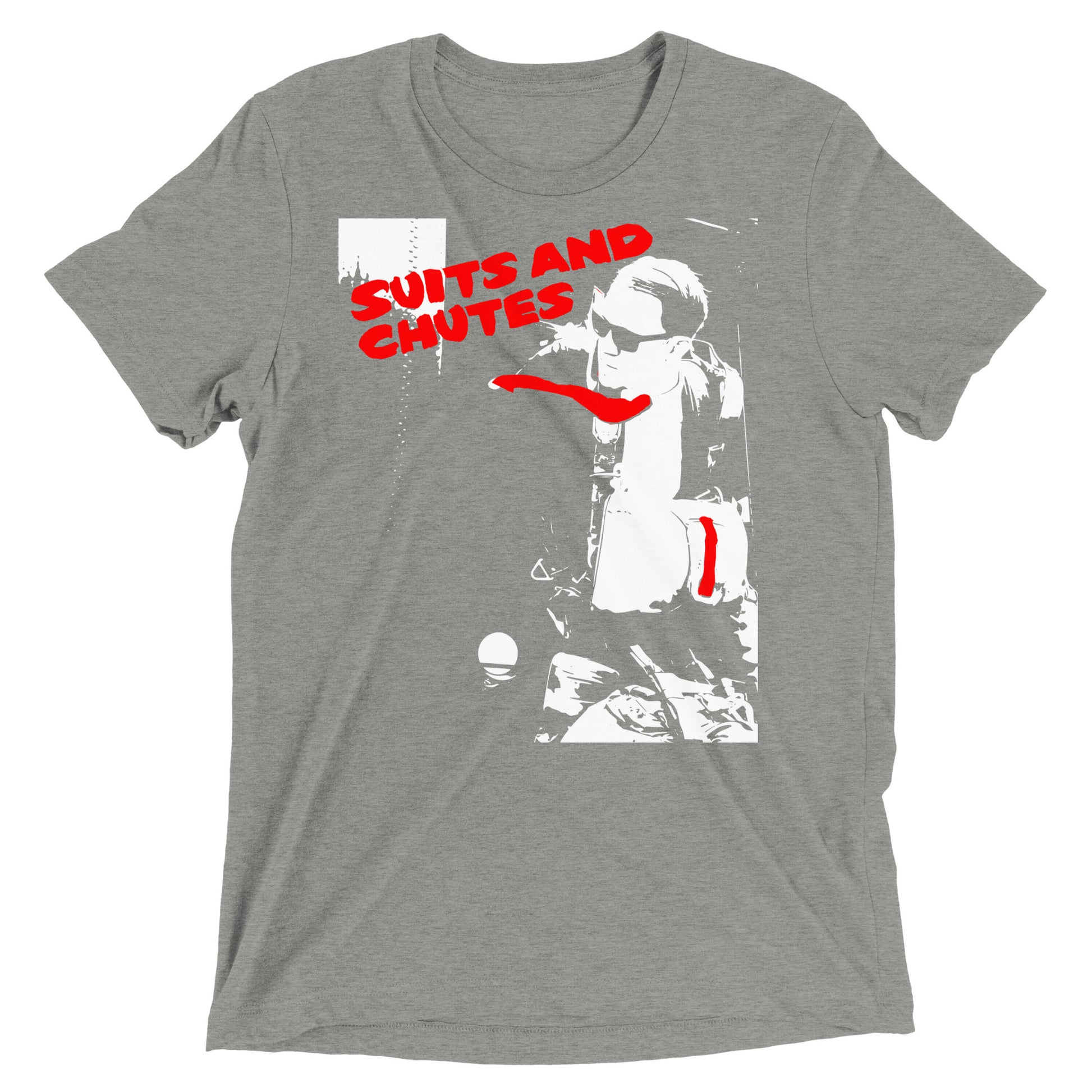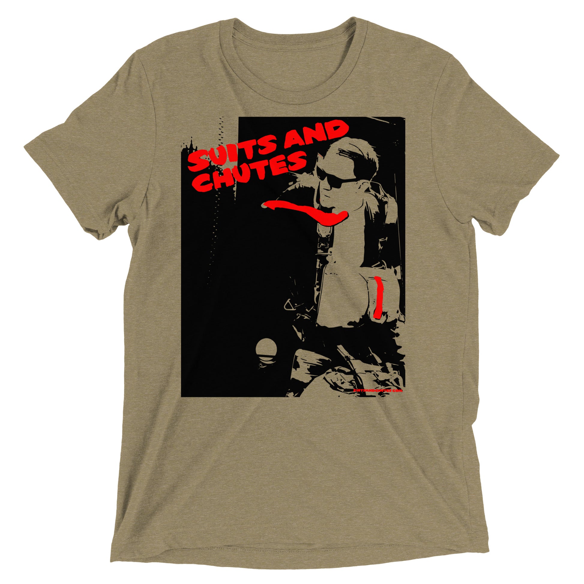 The original and best-selling Suits and Chutes shirt! Jumping in a suit with a full combat load. Realistic? Probably not. Stylish? Absolutely.