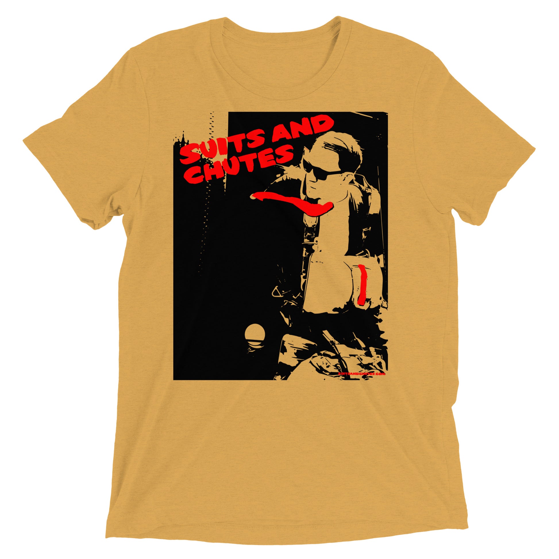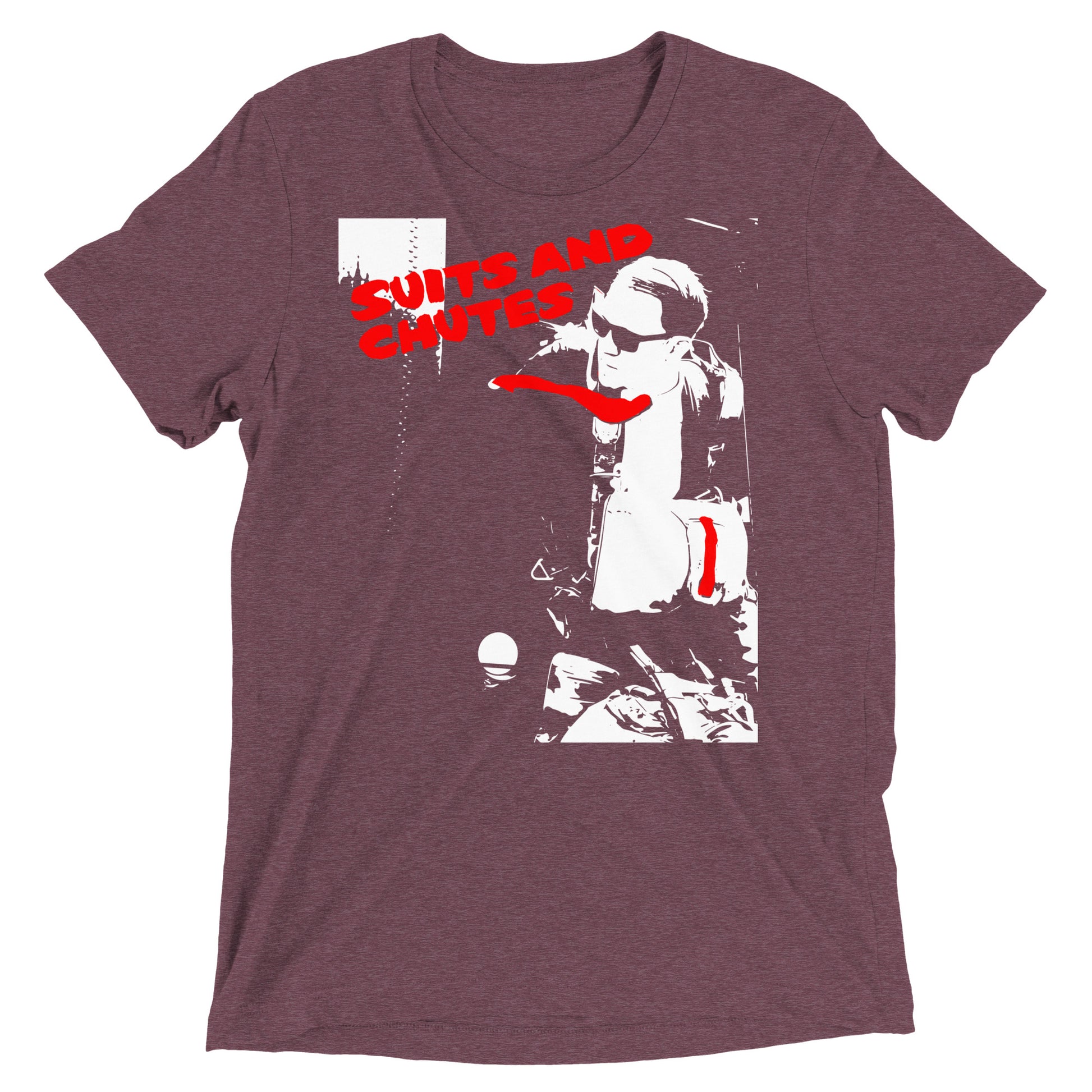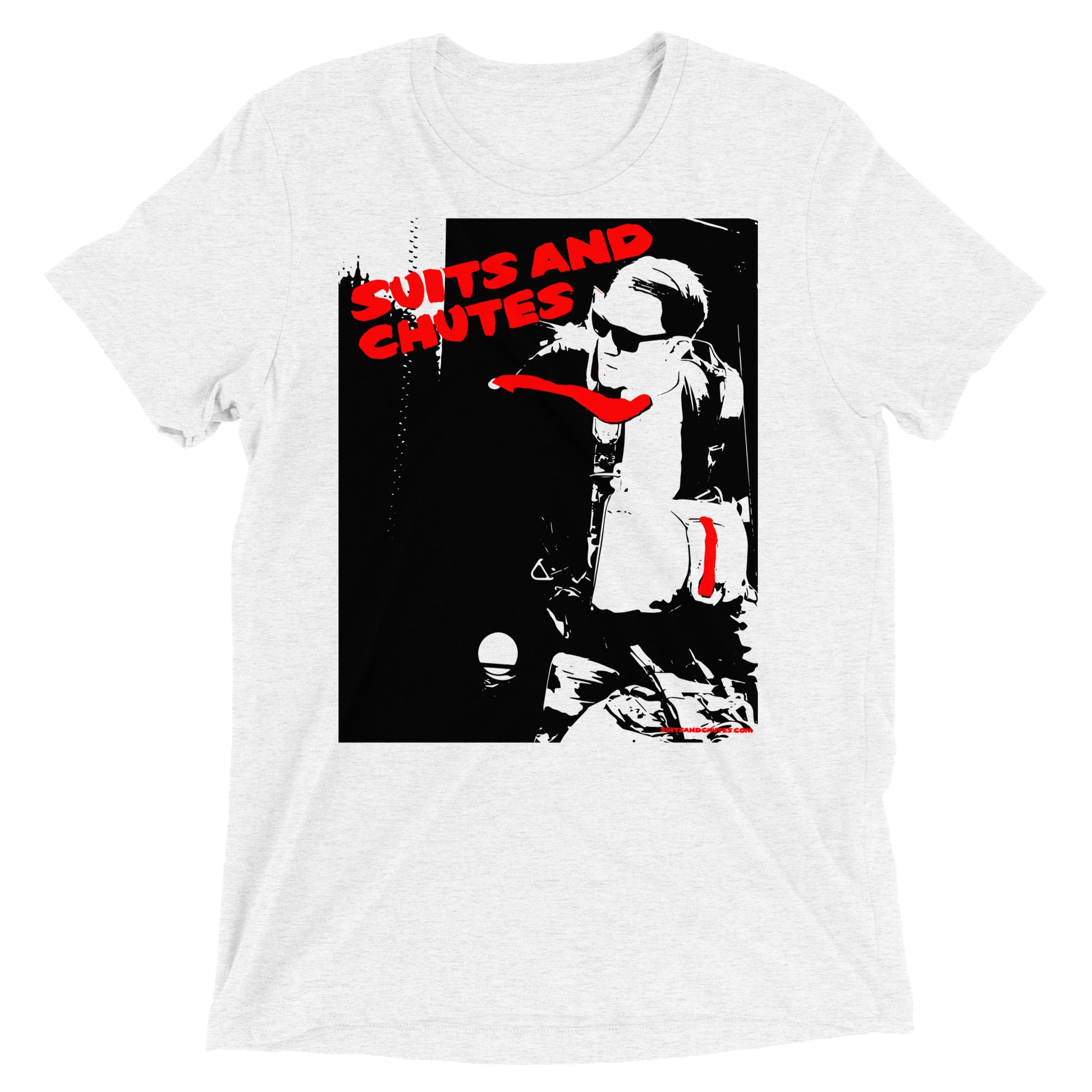 The original and best-selling Suits and Chutes shirt! Jumping in a suit with a full combat load. Realistic? Probably not. Stylish? Absolutely.
